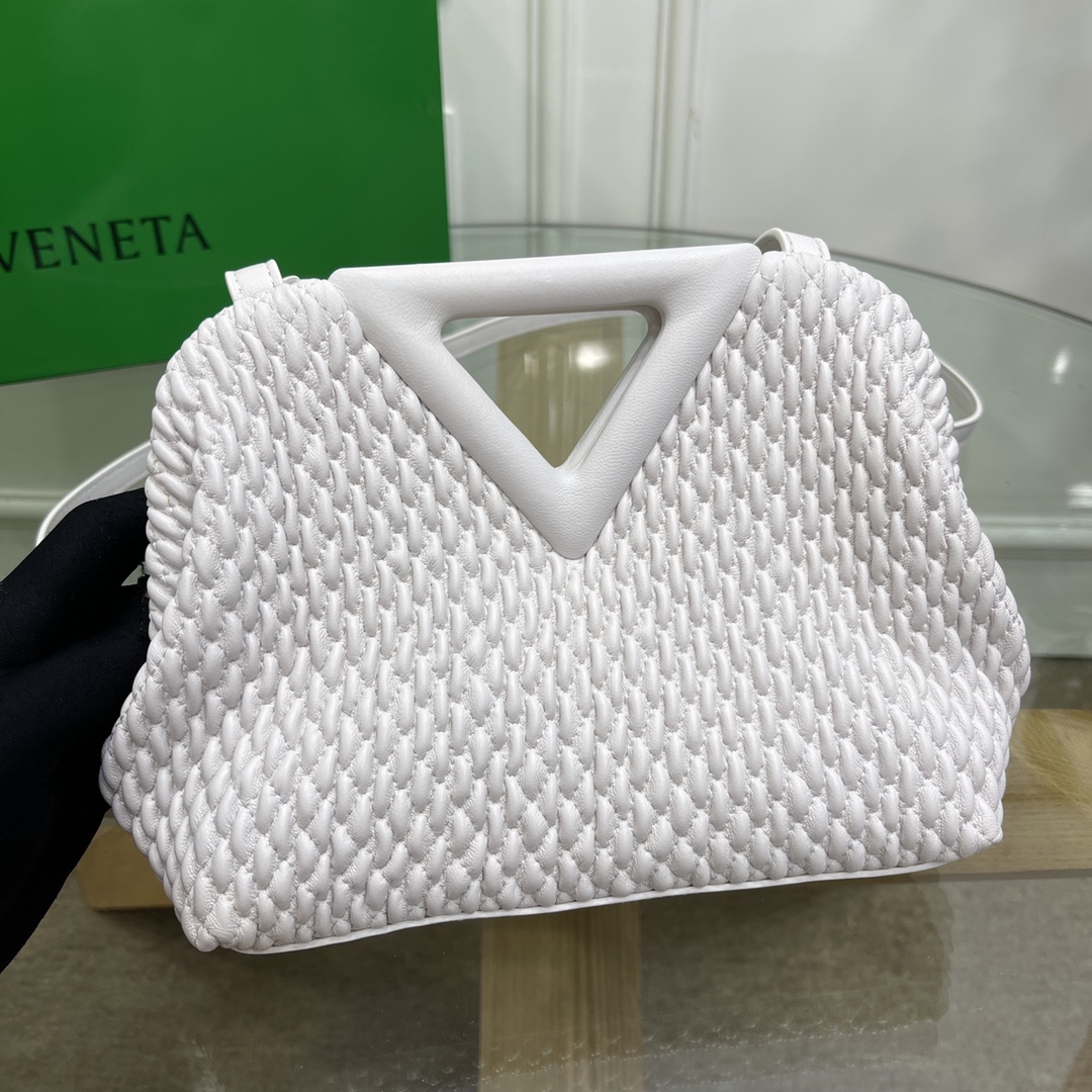 보테가베네타 스몰포인트 퀼팅 탑 핸들백 화이트