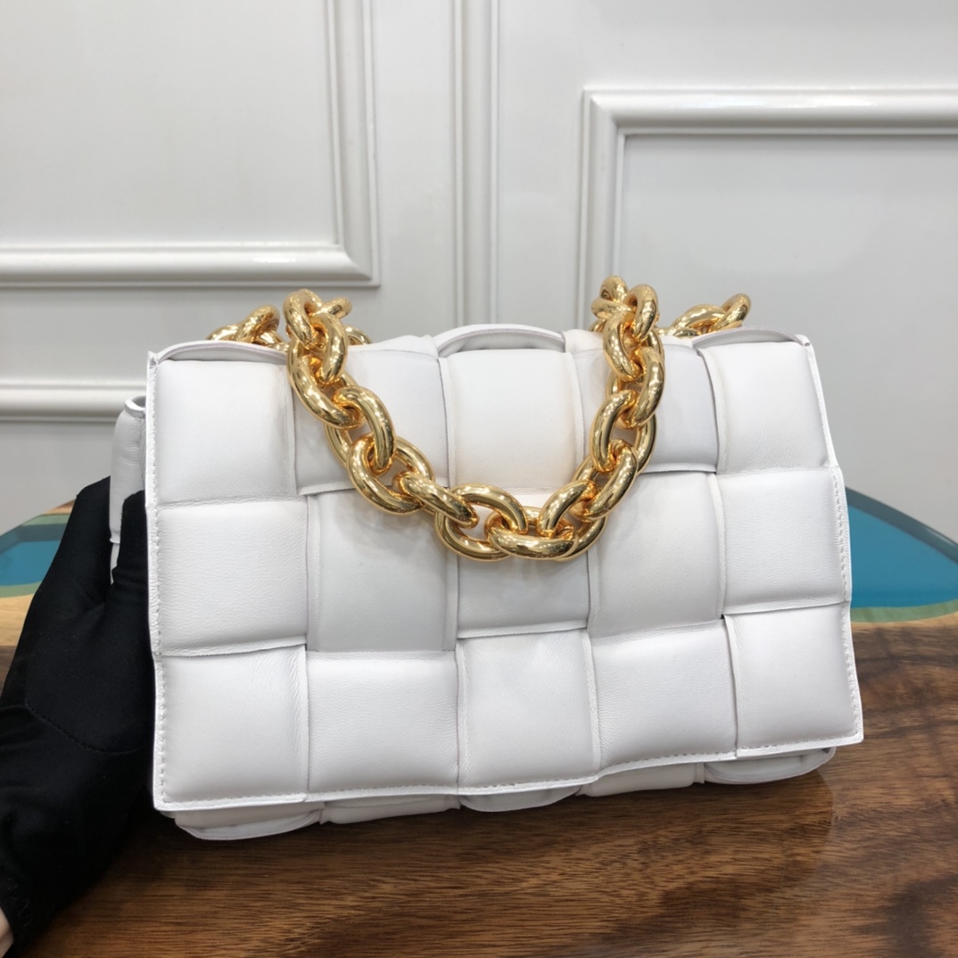보테가베네타 더 체인 카세트 인트레치아토 가죽 백 화이트