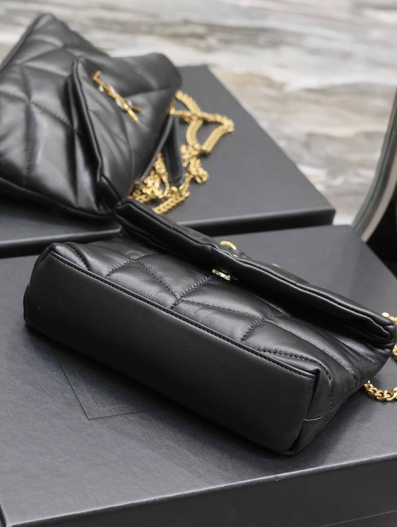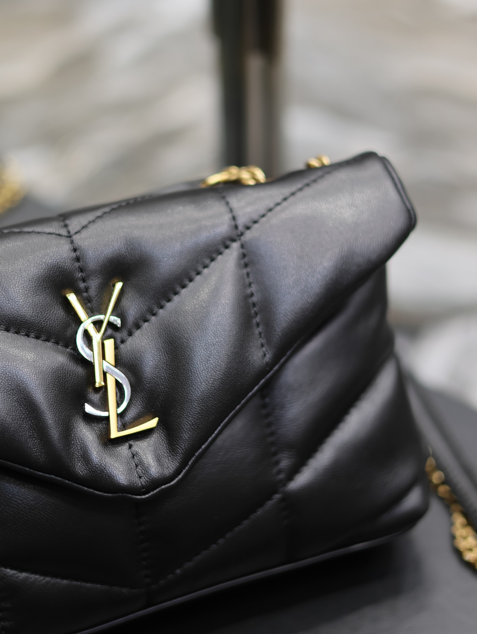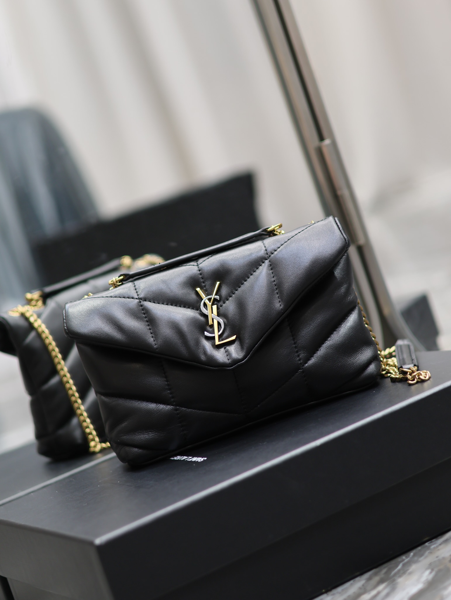 생로랑 루루 푸퍼 숄더 크로스백 블랙 금장 759337