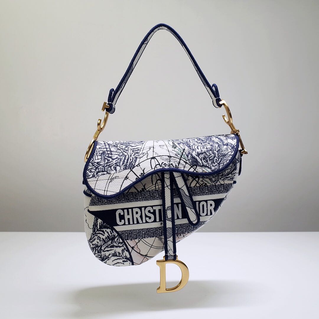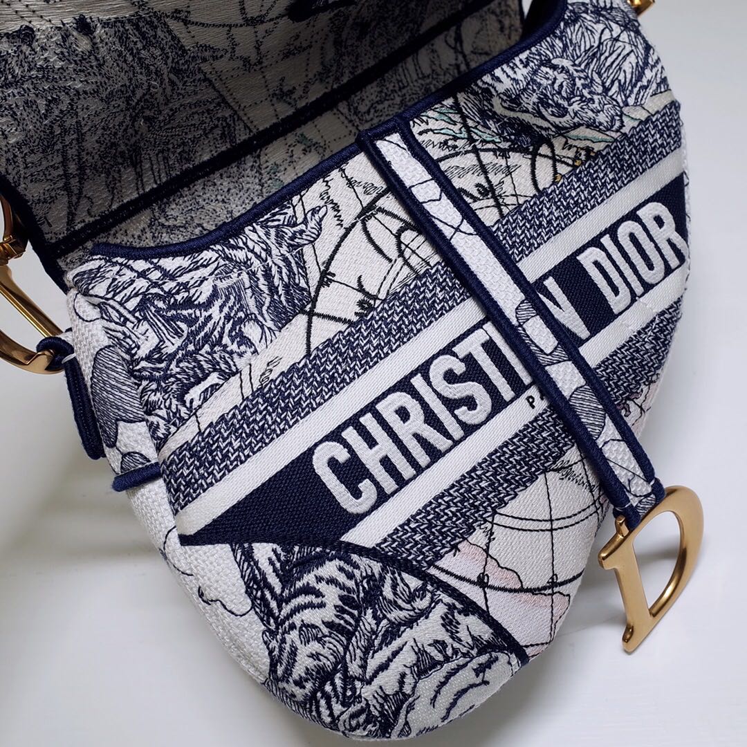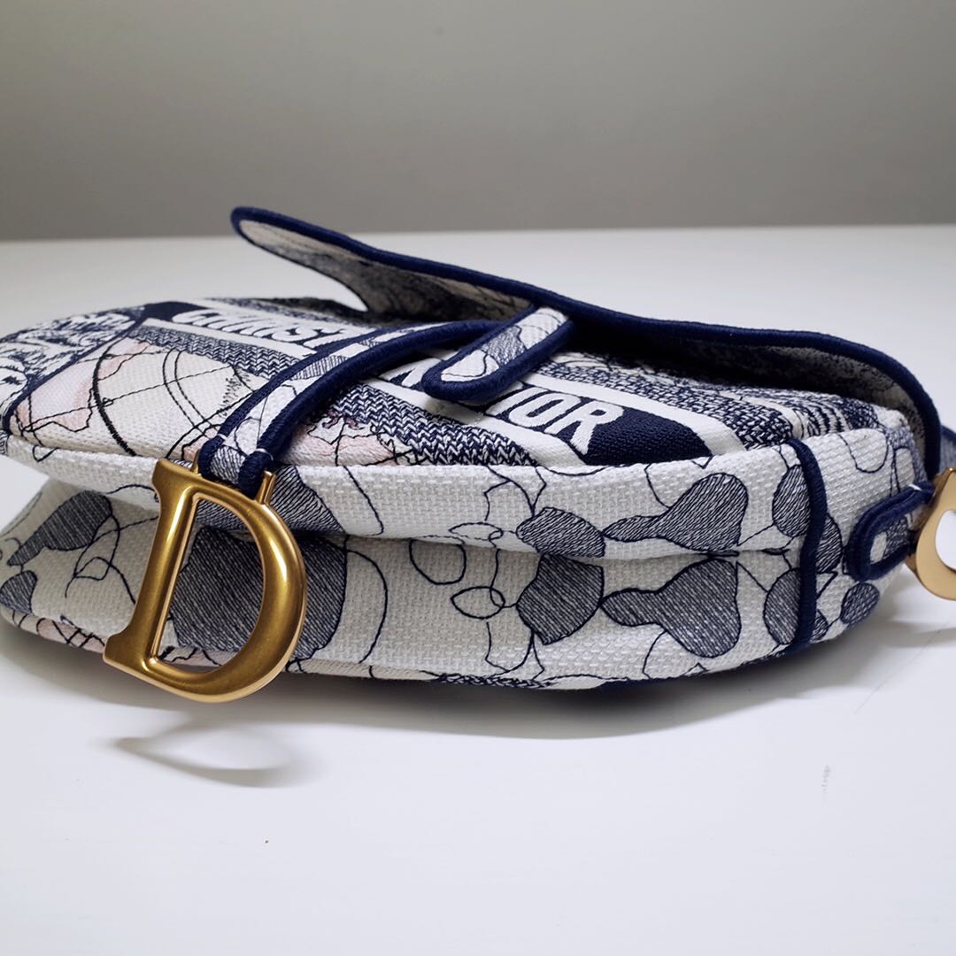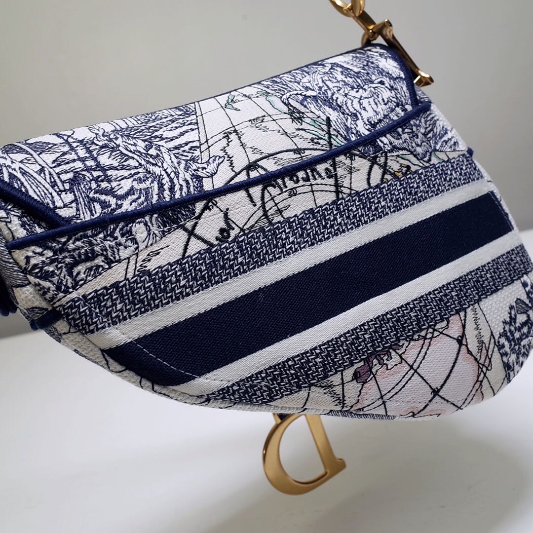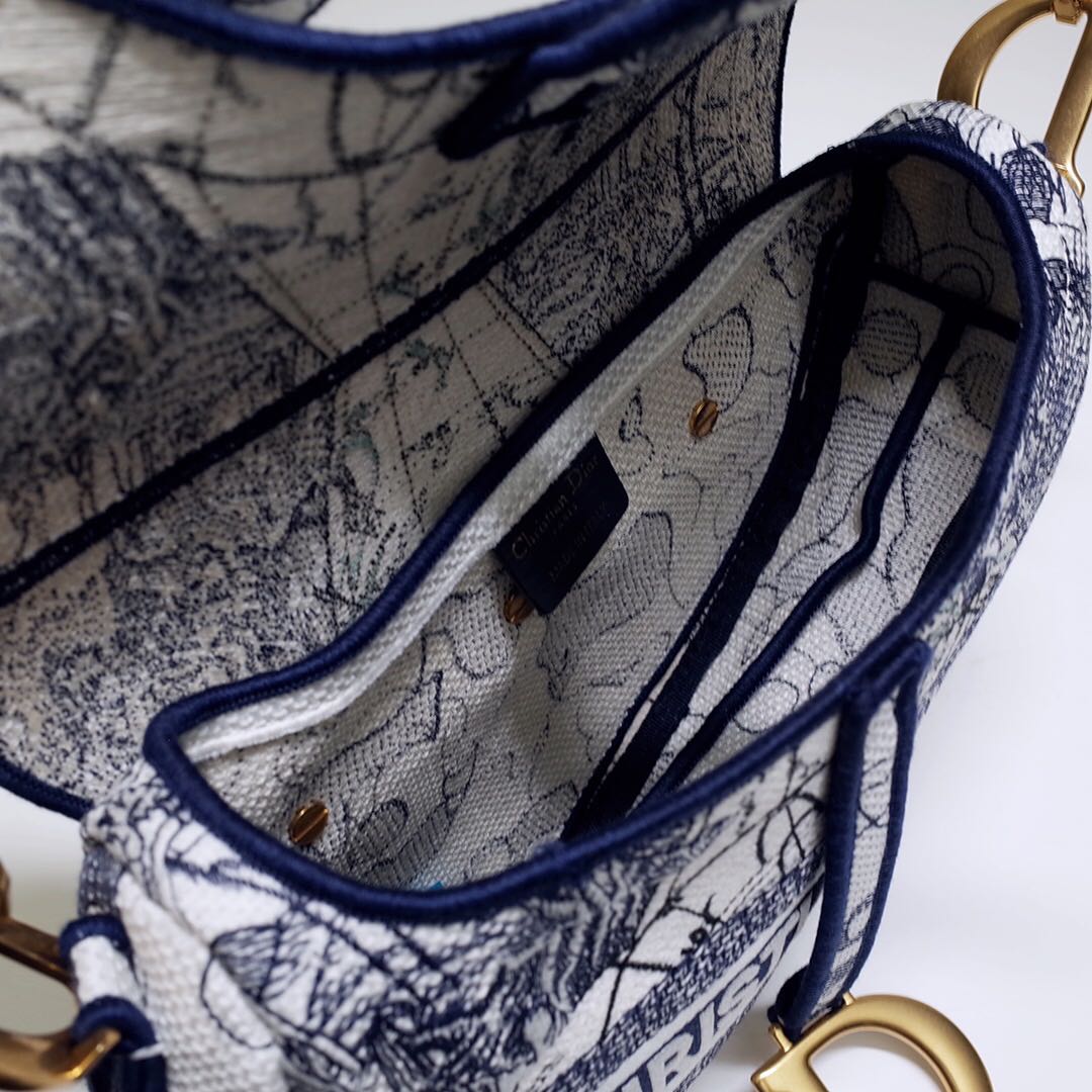 디올 블루 Toile de Jouy 새들 백 블루