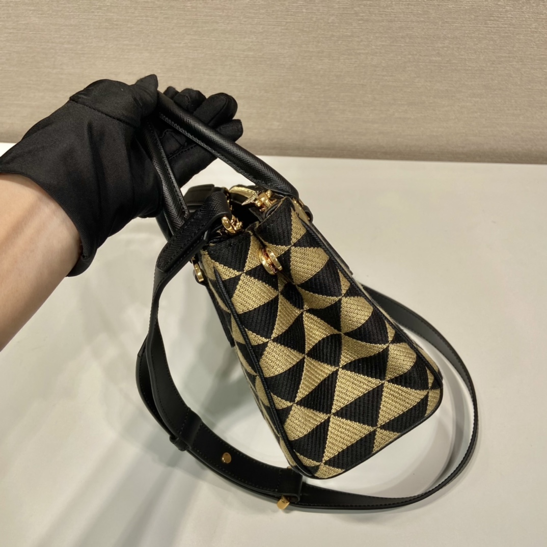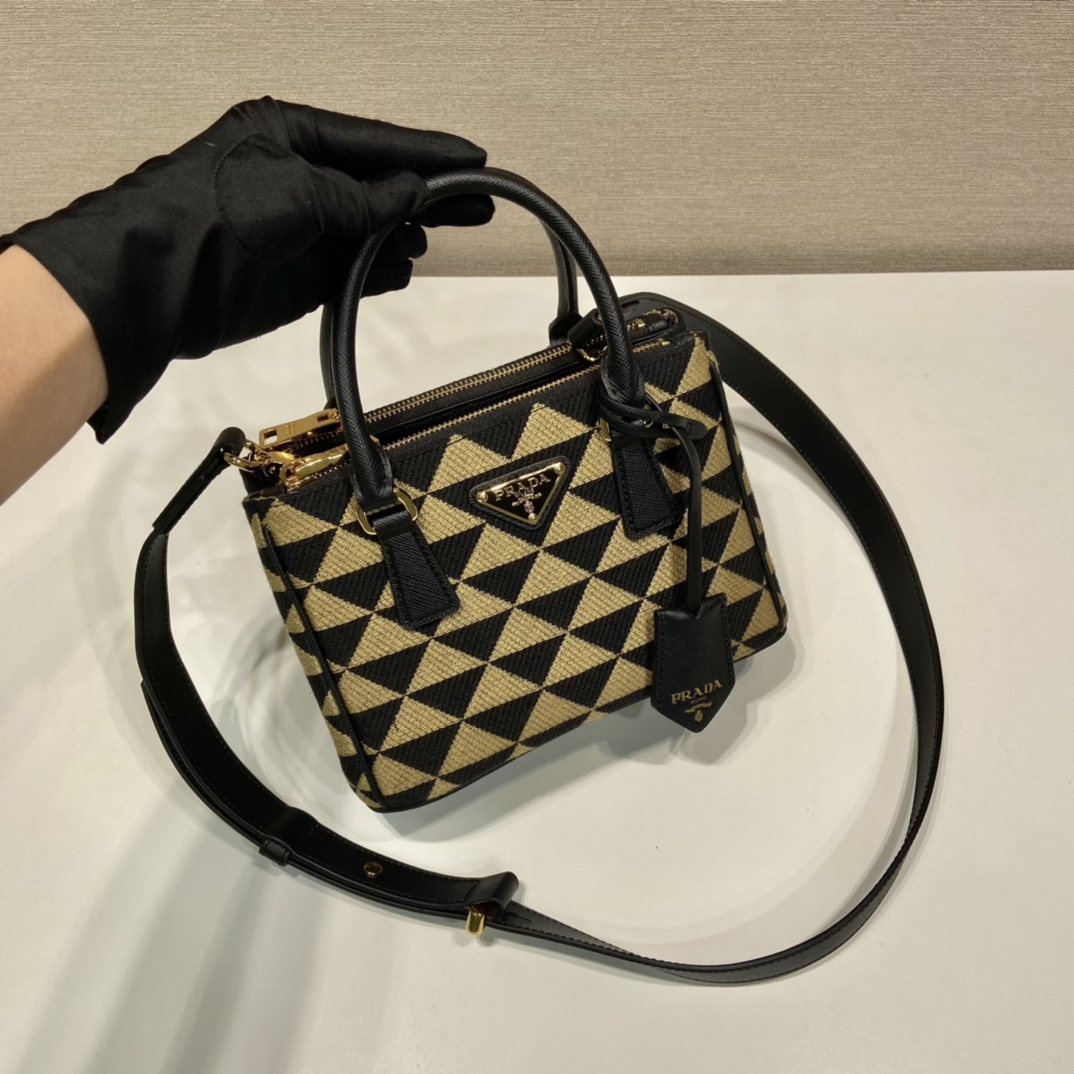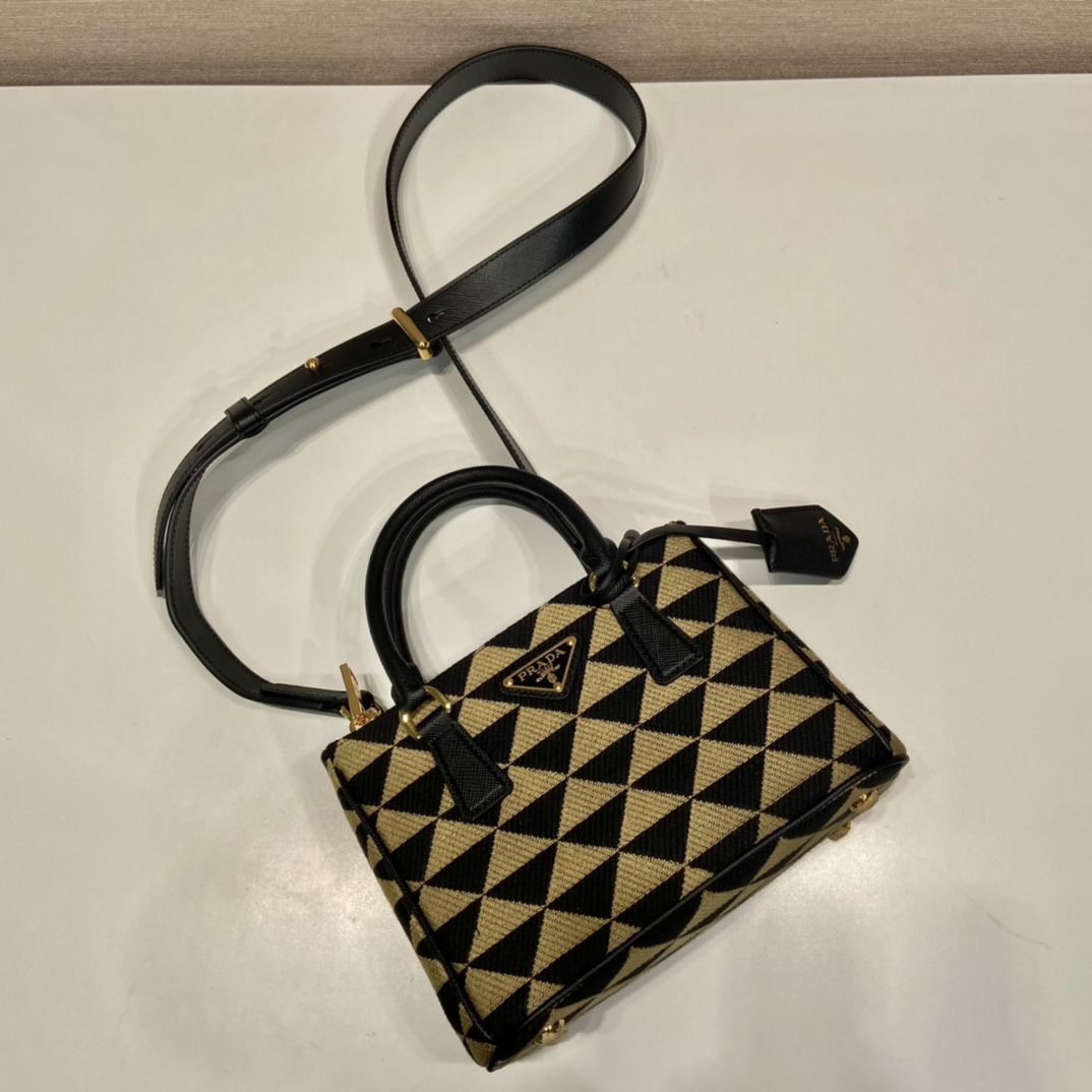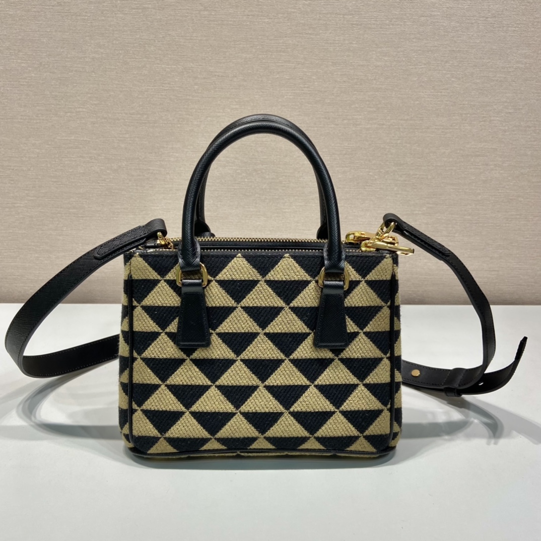프라다 갤러리아 자수 패브릭 미니 백 블랙/베이지