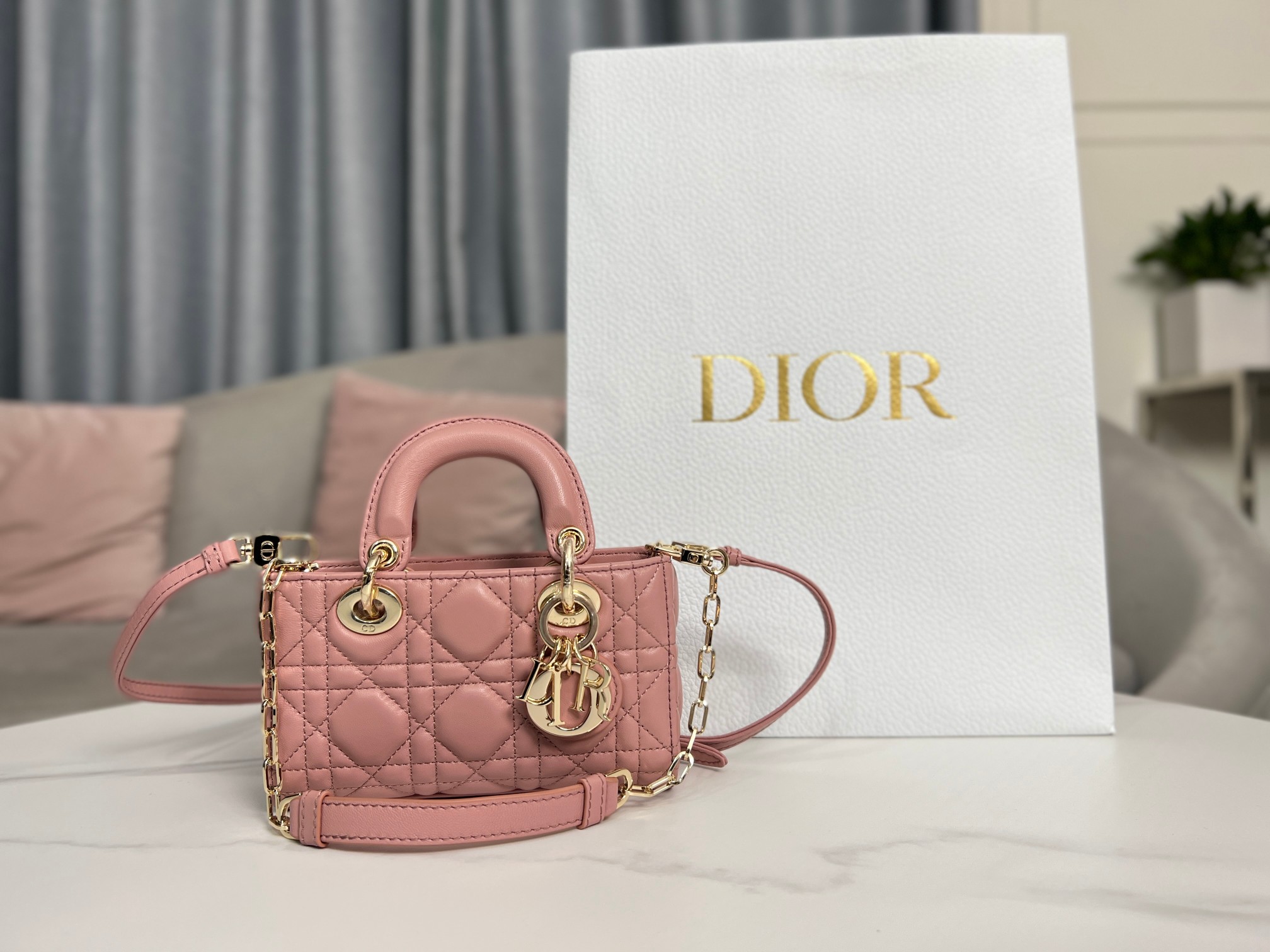 디올 Lady D-Joy 미니 숄더 백 토트 백 레이디 백 05402 로제 핑크