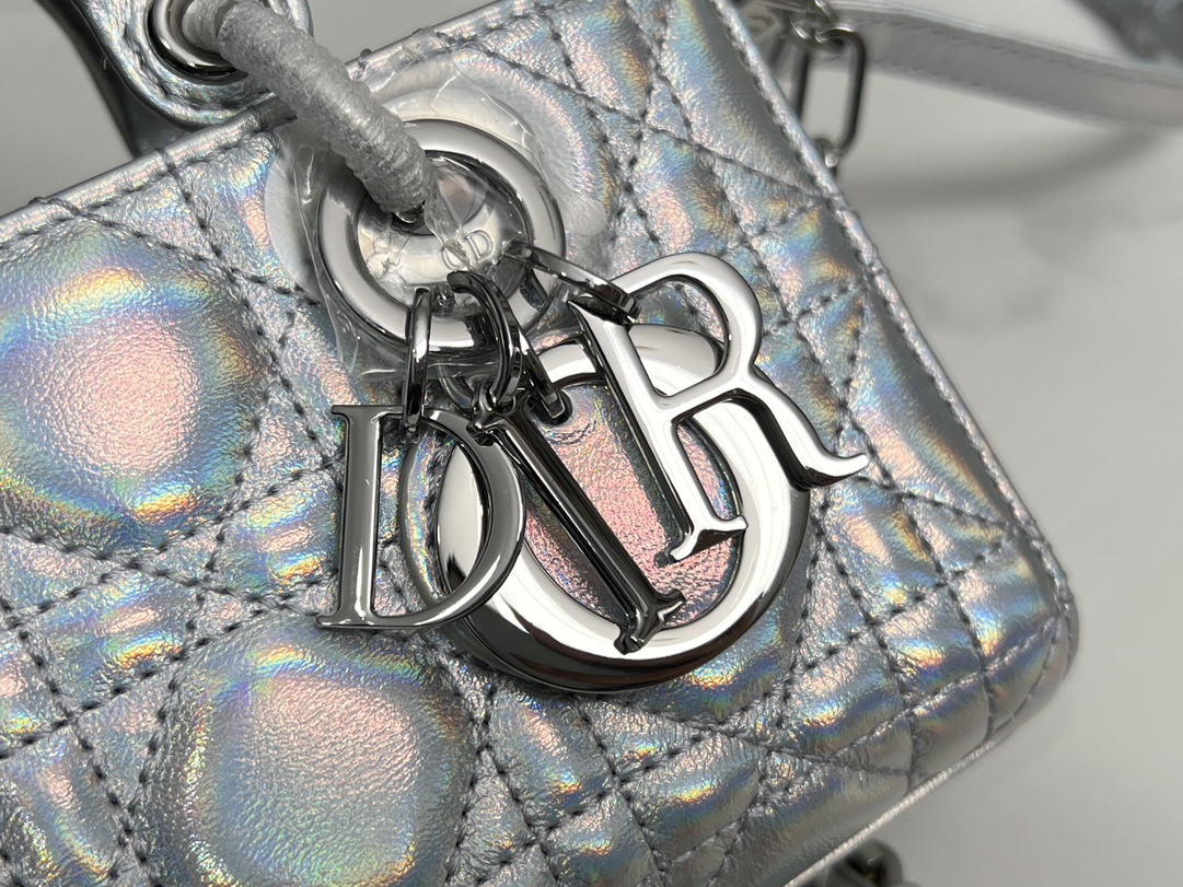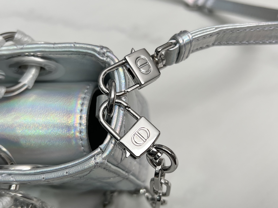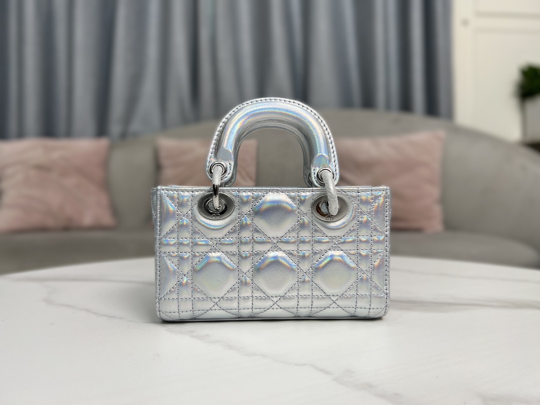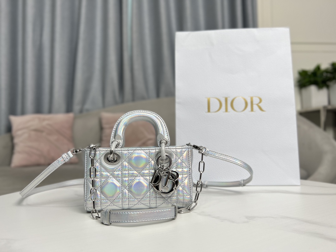 디올 Lady D-Joy 미니 숄더 백 토트 백 레이디 백 05402 형광 실버
