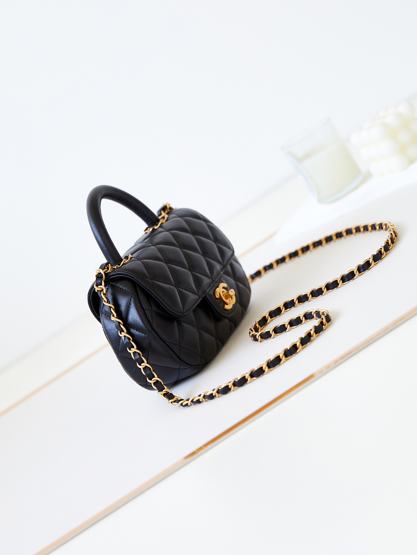 샤넬 탑핸들 펄 체인 토트 크로스백 AS4573