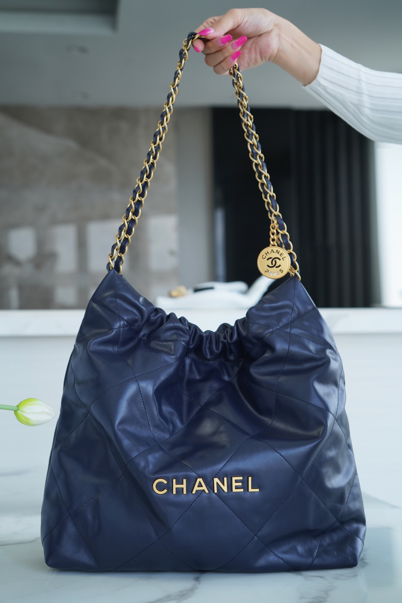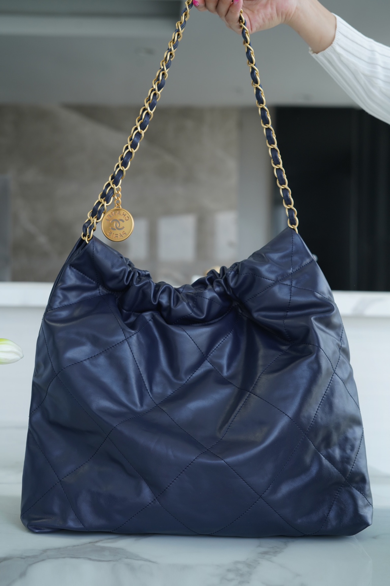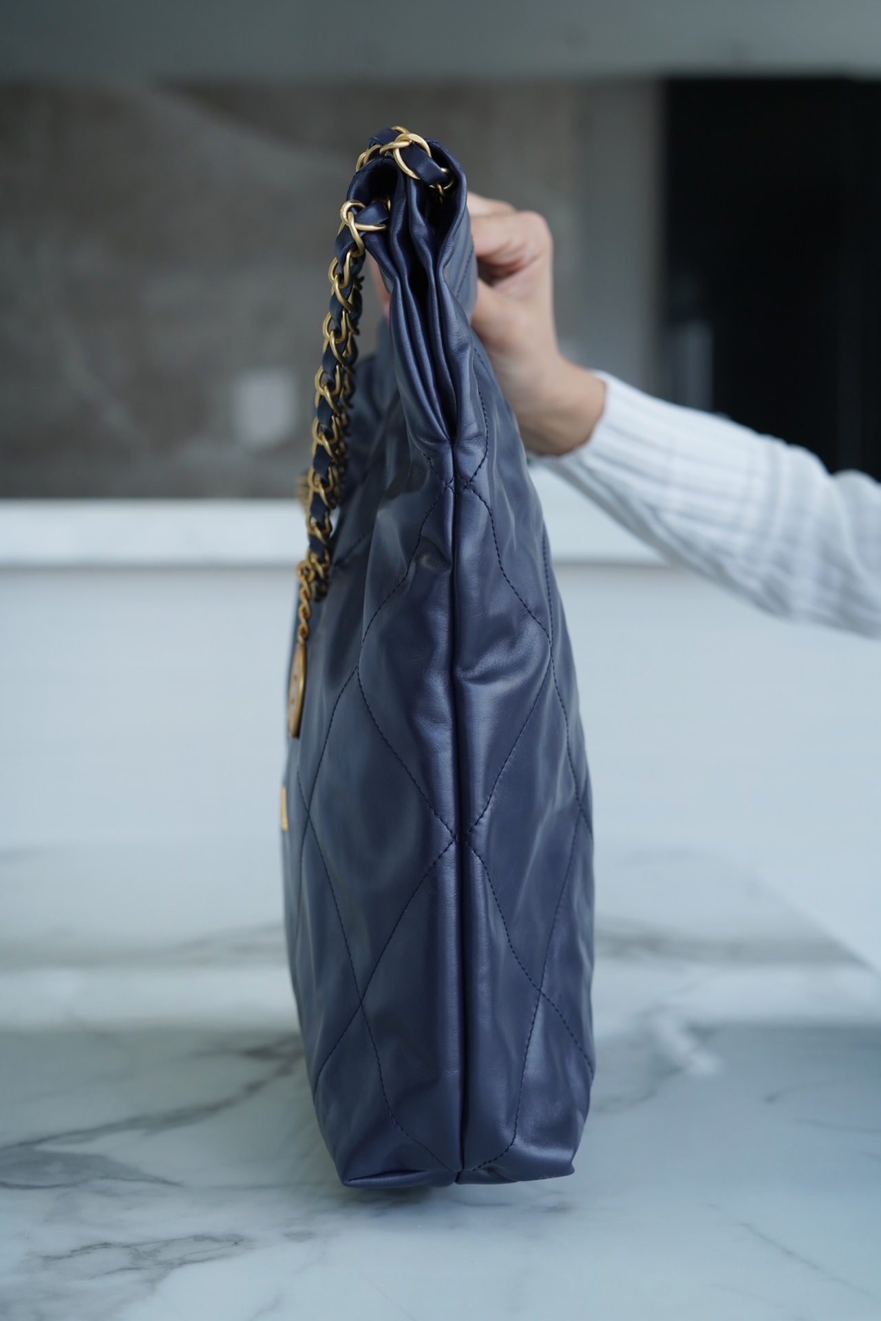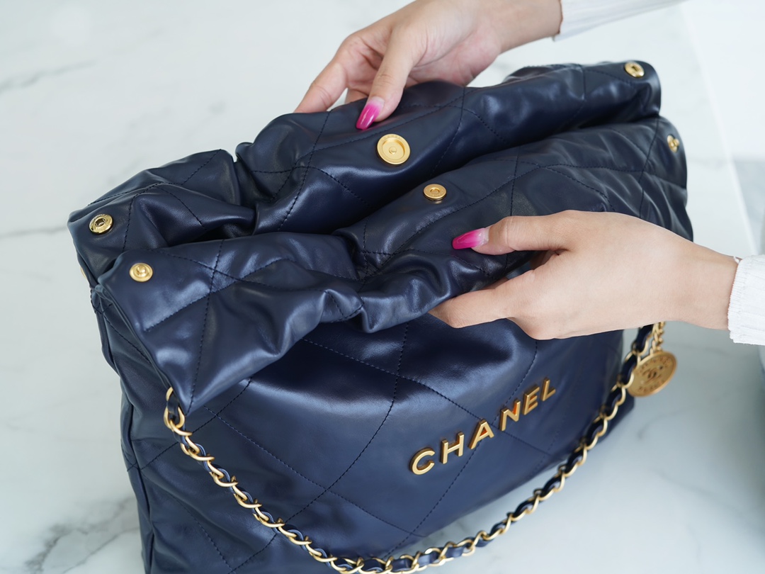 샤넬 22백 미듐 네이비 금장