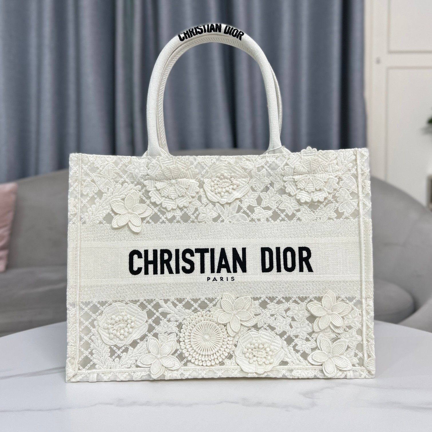 디올 BOOK TOTE D-Lace Macram? 미디움 토트 백