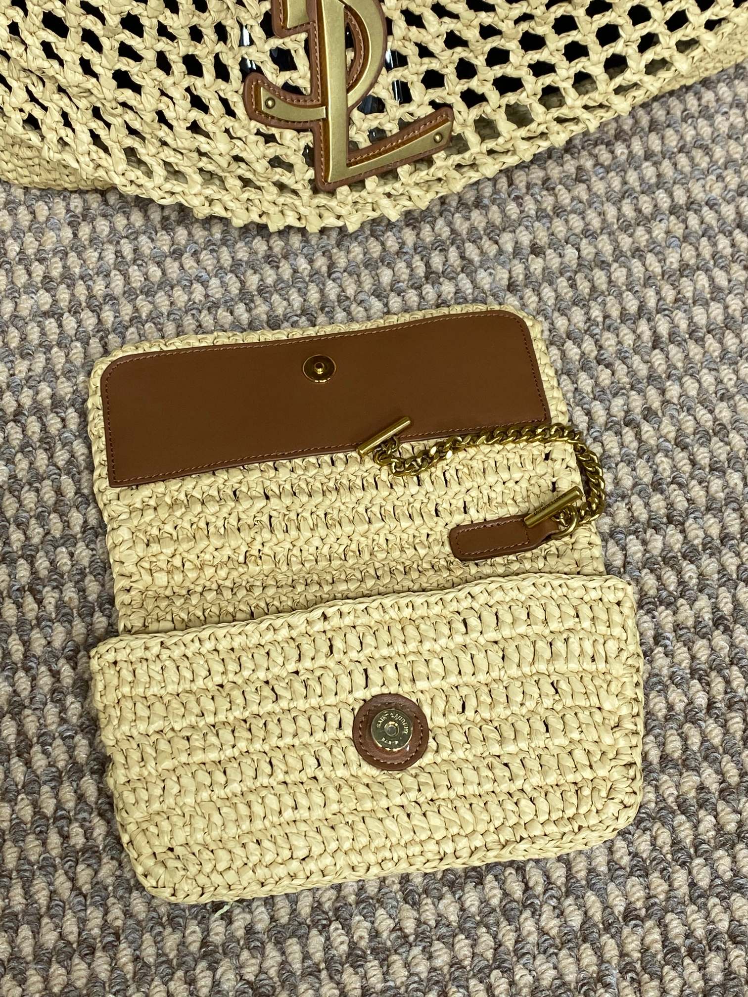 생로랑 크로셰 라피아 icare 맥시 쇼퍼백 698651