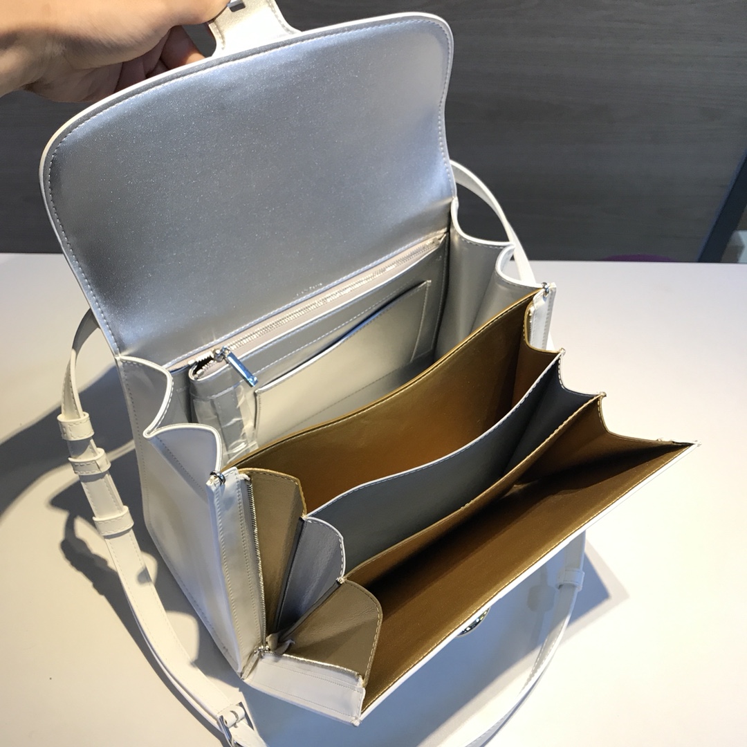 델보 DELVAUX Brillant Magic 핸드 백 숄더 백 실버 버튼